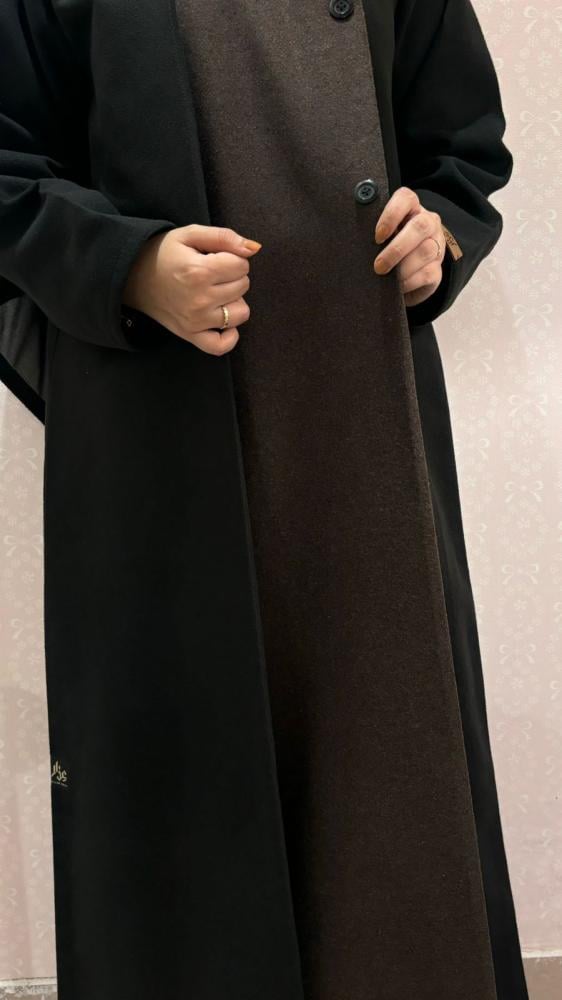 عبايه شتويه بقماش الجوخ الأسود والبني